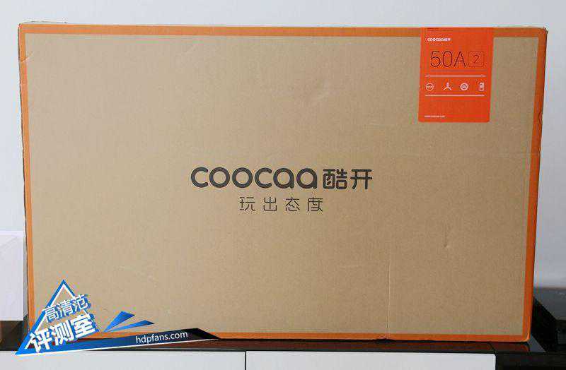 首先我们来看看酷开50A2智能电视的外包装,这款智能电视的外包装相比测评室之前评测的酷开T55艺术电视包装相比,在色彩搭配上更富朝气,橘红色边沿设计,不失活泼。除开酷开专属LOGO“COOCAA酷开”以及品牌标语“玩出态度”,右上角还有产品标签。