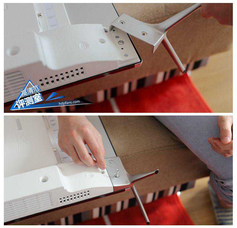 测评君先带大家来看看酷开50A2智能电视的底部,底部设计了长条形的散热孔。由于支架需要自己安装,来看下电视底座支架的安装图。