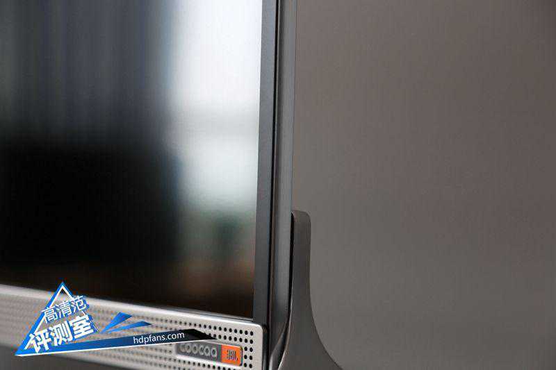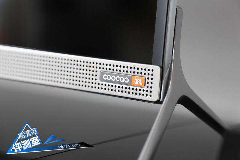 家族式前脸设计还是一样时尚,底部金属边框设计有COOCAA和JBL共同合作研发的A级音响标识。人形底座支架金属质感,更具科技感;金属前脸穿孔设计用于散热、防尘;左下角设计有蓝牙音响按键以及遥控指示灯。
