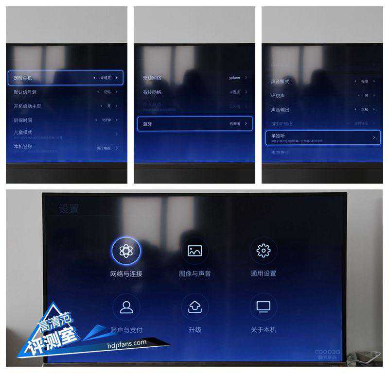 设置除了常见的声音、画面、网络等设置,还可设置单独听,儿童模式等。