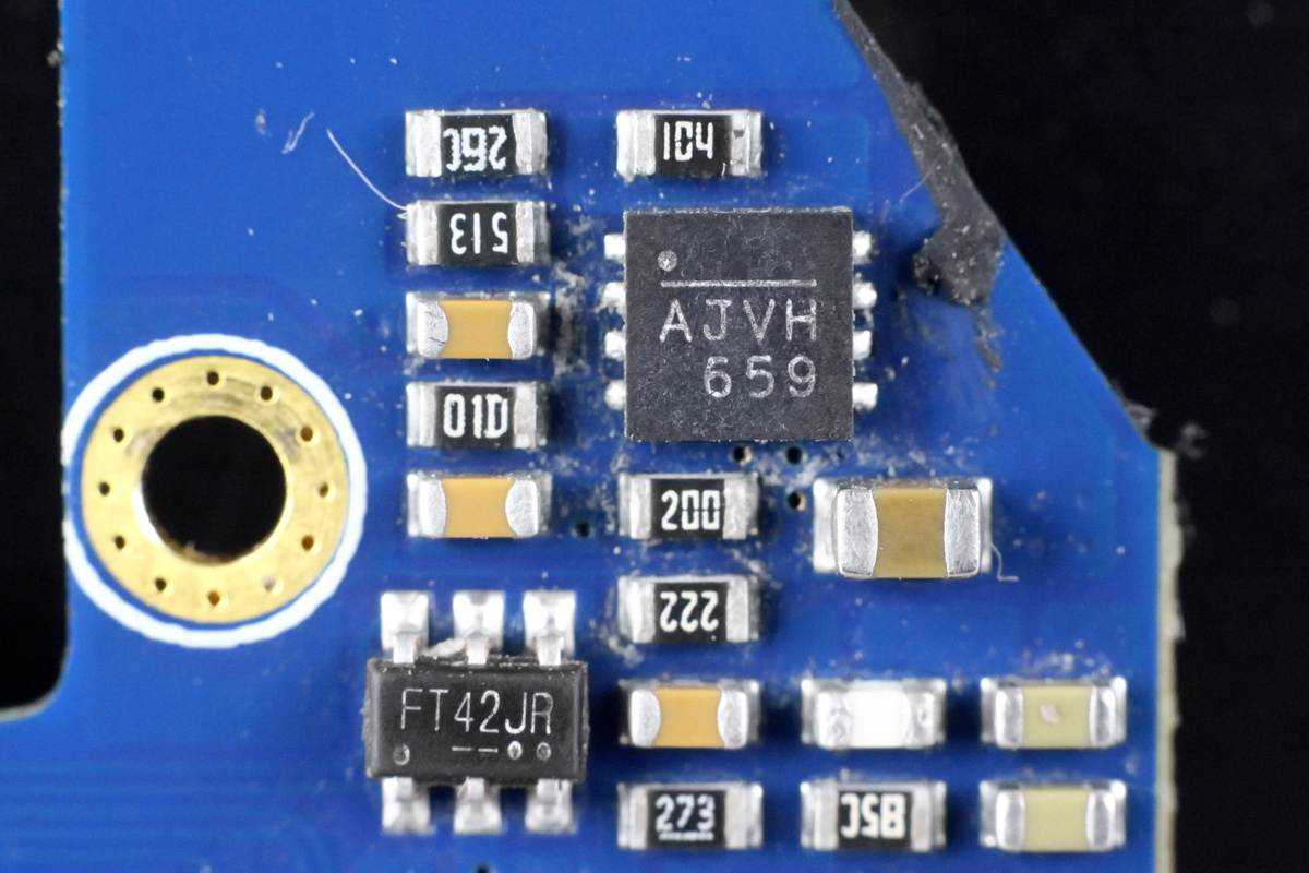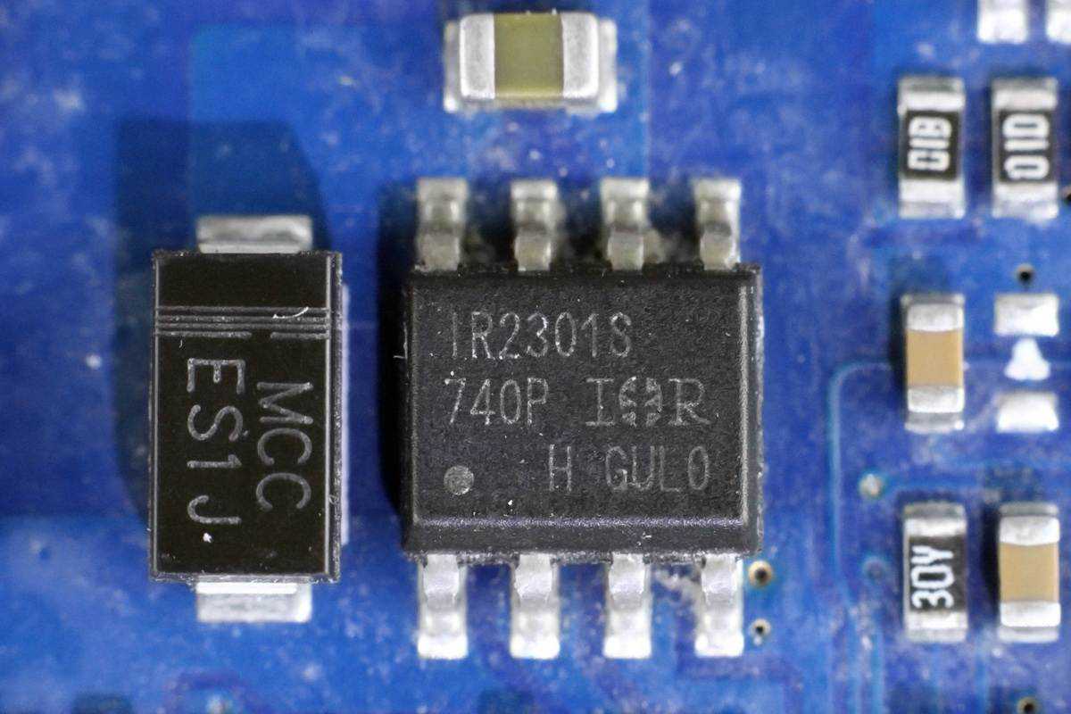 两颗NPO谐振电容特写和无线充电功率管特写,无线充电功率管采用SOT23封装。