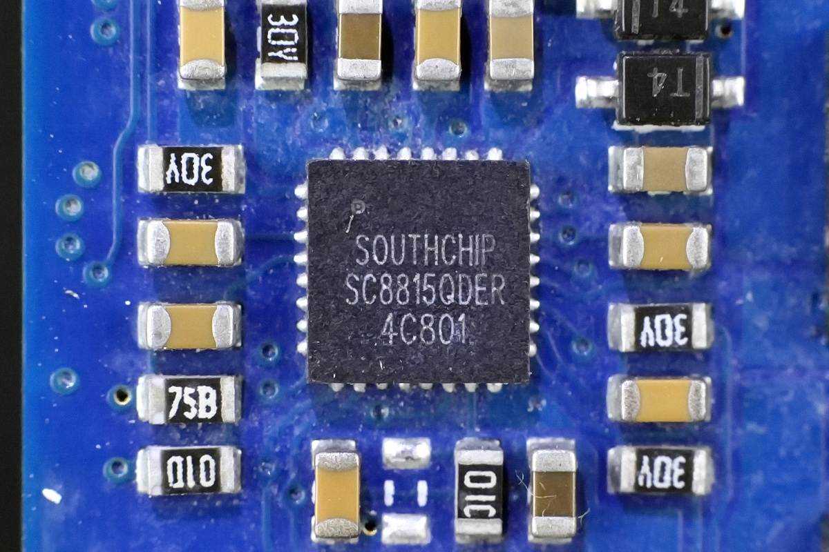 同步升降压控制器采用南芯半导体SC8815。这款芯片的I²C可编程充电电流和充电电压、可编程放电输出电压、可编程输入/输出电流限制;内置10位ADC;拥有欠压保护,过压保护,过流保护、短路保护和热关断保护等多种保护功能;单芯片完成充电/放电控制,支持各种电力转换。