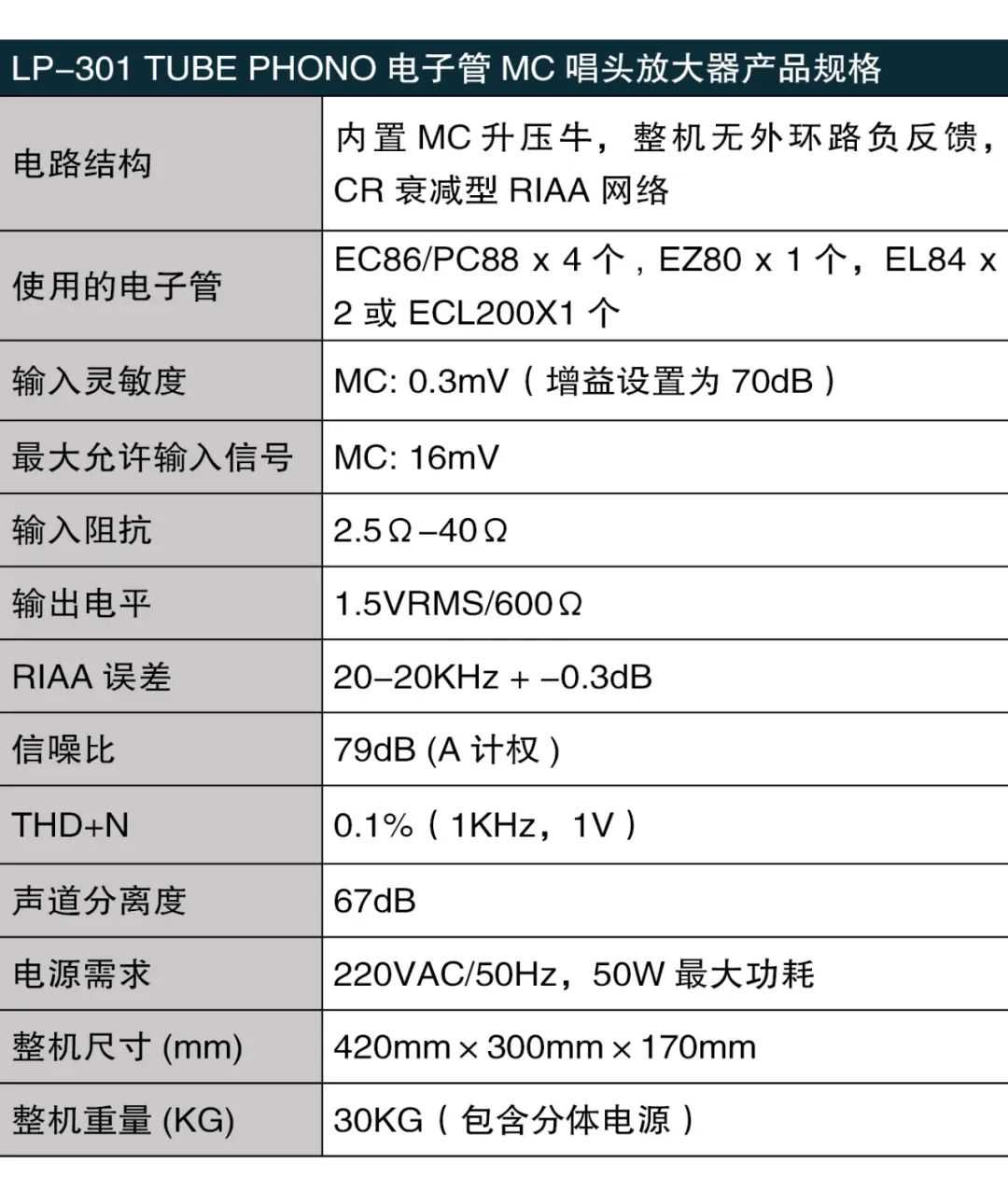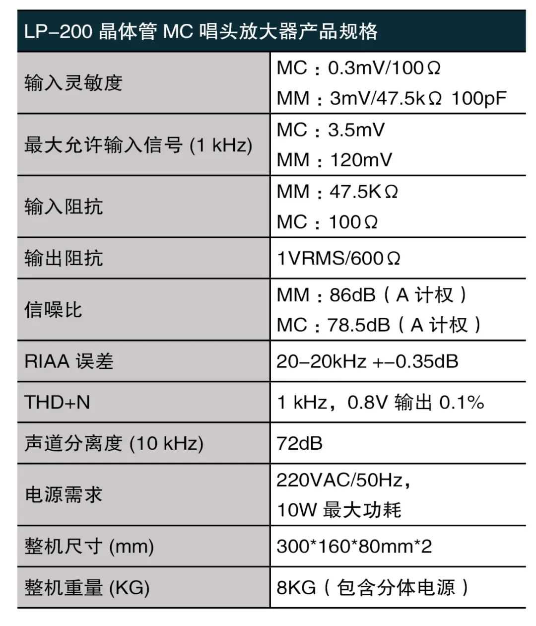 ■唱头阻抗匹配20(M档)欧/100(H档)欧两档调整;