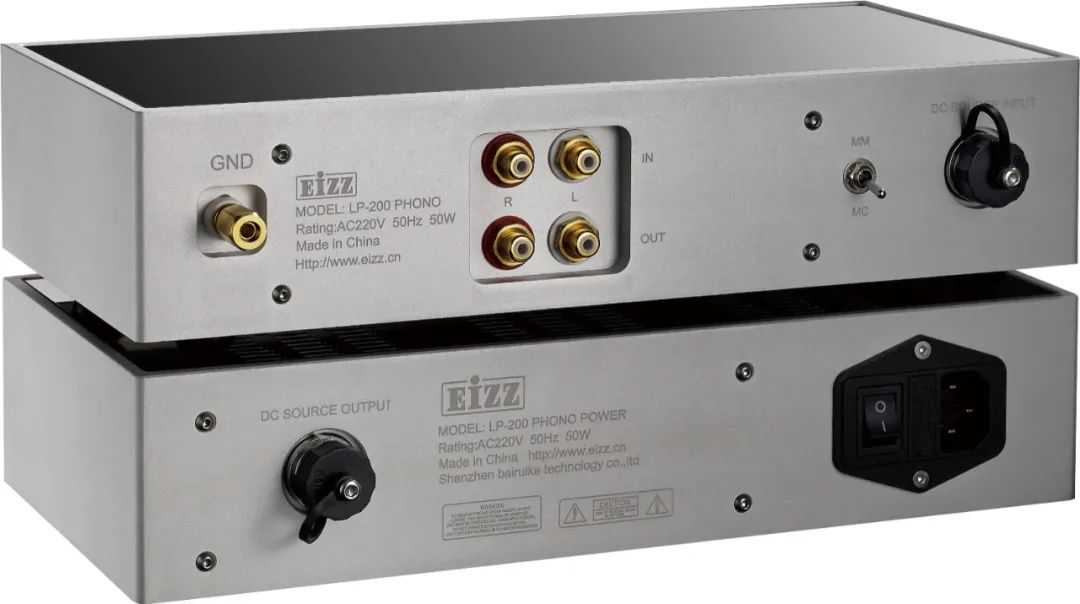 继承了高端电子管MC唱放的经验,继续采用电源和放大分体的方式,面板简洁大方,尽可能的消除潜在影响性能的因素。在传统的唱头放大器设计中,大多数唱放都是以40dBRIAA均衡放大给MM唱头使用,同时在MM的输入端额外增加20dB的平坦放大级,从而达到MC唱头放大所需的60dB增益,这个放大级甚至是可以是一个单独的组件,一般叫做MC前置放大器或者前前置放大器,但是EIZZ的唱头放大器开发了不同的策略,采用的是两级均衡放大,同时两级设置固定增益工作,MM和MC采用了相同的有源放大线路,同时性能完全一致。