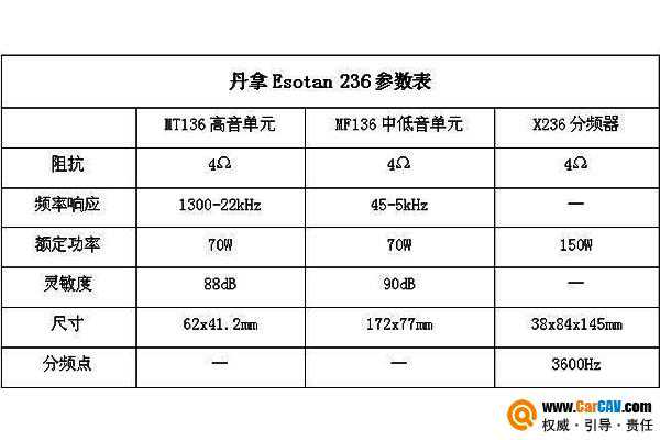 其次,不仅是外观,丹拿Esotan236内在同样做了很多细节处理。如被动分频器里面,电容和电感都有做相应的产品升级。尤其是其分频器,整体的灵敏度提升了2dB。在声学角度来看,2dB灵敏度的提升有着非常重要的作用,要知道每一个dB意味着33%的能量的提升,2dB则有接近67%效率的提升。这意味着丹拿236两分频套装可以通过原车主机直接推动,又或者说只需要50W到70W的小功率功放,也能让这套扬声器将性能发挥得淋漓尽致。该产品的问世,一改以往发烧友对丹拿吃功率的产品认知。