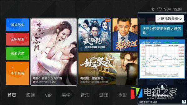如果你厌倦了传统繁琐的操作,那么我们来换一种玩法。艾洛维VH710本身也是一款人工智能语音的产品,可以快速准确地识别语音指令,除了常见的搜片、快进快退等基本操作指令外,还支持查询天气/股票/百科信息,设置日程,定时提醒等多种功能。值得一提的是它还能够识别广东话和四川话等方言,大大增强了日常操作的便捷性。