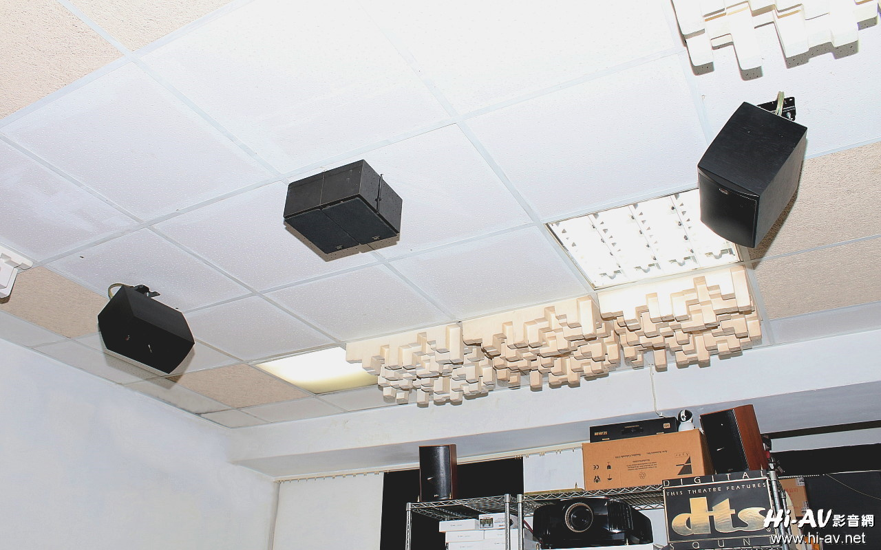 DenonAVR-X8500H完整对应的声道模式除了「上方中央声道」之外,还需要装设「皇帝位」正上方的「上帝之声」(VoiceofGod)喇叭来建构Auro-3D完整的「三层式环绕音场」。考虑到本站视听室天花板高度是较低2.4米,因此没有再采用音箱深度较深的PSBAlphaB1,而是使用一对闲置、音箱深度只有12公分的NHTSuperZero做为「上帝之声」喇叭(其一般阻抗为8Ω,两支可并联为4Ω阻抗安全使用)。