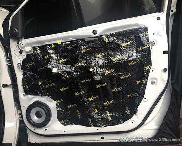 为了前后声场喇叭有更好的音质发挥,改装技师用中道隔音的止震板将前后车门都做了双层隔音处理,减少了路噪和风噪的传入,也防止了车门与喇叭的共振,为音响器材提供一个良好的工作环境。
