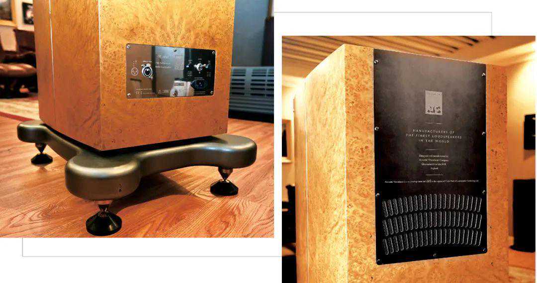 ▲力高音响订制的SCM100SE有个巨型脚架,对声音的稳定感,低频的释放都至关重要。背板只有一个平衡接口与一个电源开关。SCM100SE的背板并没有看到把手与散热片,功放完全隐藏在箱体里面,为了有效散热,ATC以镀铬金属板镂空封起来,看起来很漂亮