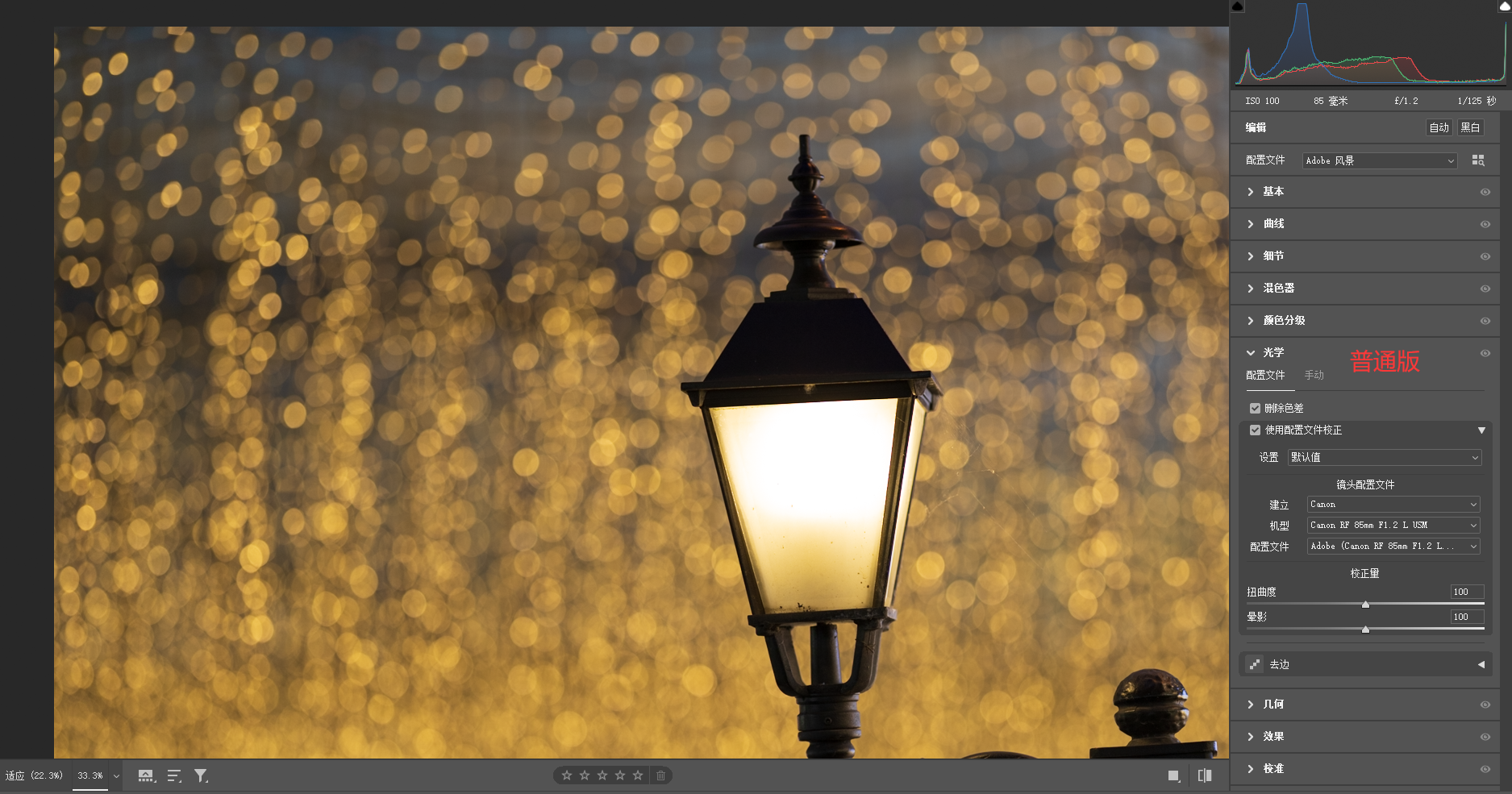 放大对比焦外。可以看到普通版的光斑更亮更圆,边缘锐利,显得轻快活泼。