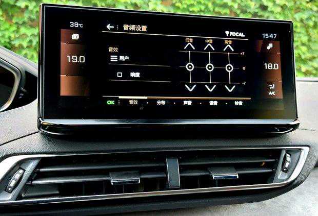 在Focal劲浪的参与下,标致全新4008在音效上,可以调节低音、中音、高音的增益幅度,各有14个挡位。在分布上,可以调节中声道和低音炮的增益。比如,打算播放听人声、女声为主的歌曲时,可以调节中音道,这样人声会更加突出。遇到动次打次的低音歌曲时,还能调节低音炮助兴。