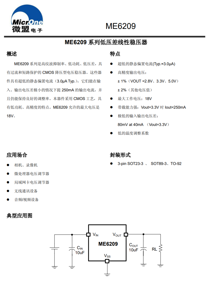 MicrOne微盟ME6209系列详细资料图。