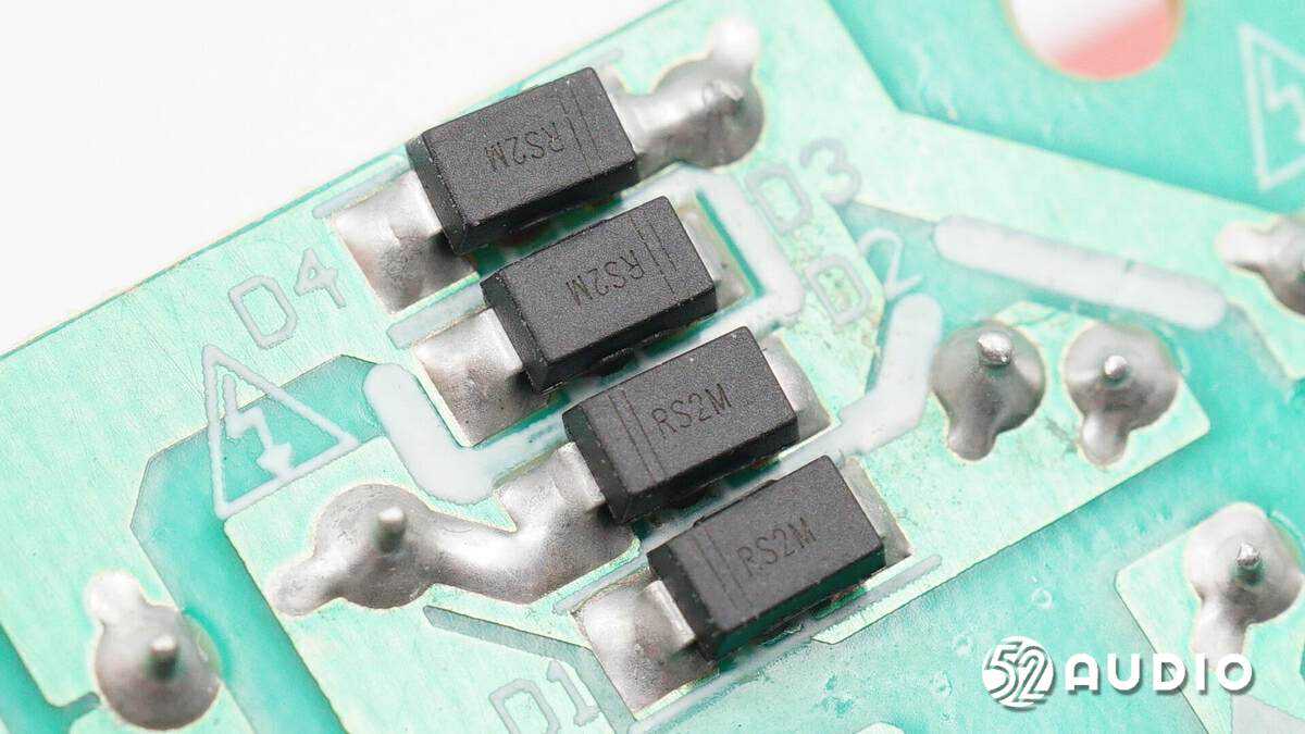四颗丝印RS2M的快恢复二极管,用于输入整流。