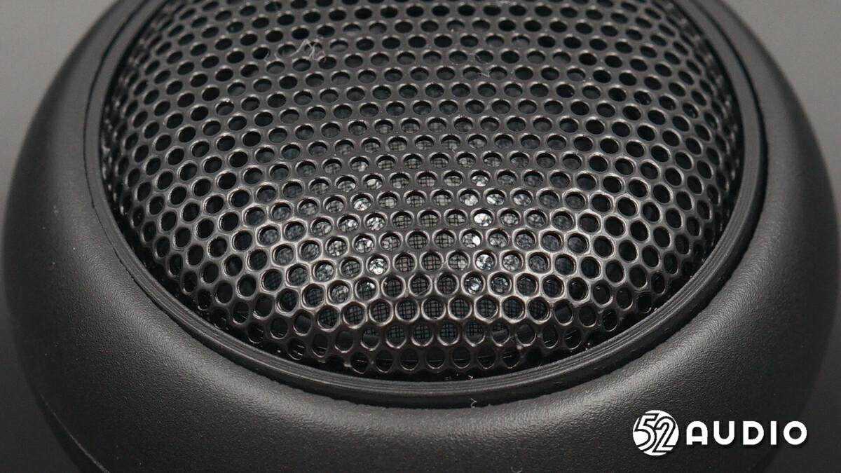 天然丝振膜球顶特写,通过金属罩防护,内层还设置有更加细密的金属网。