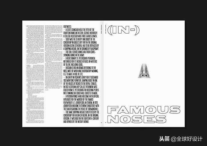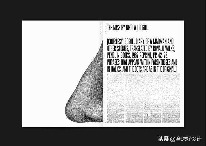 正如约翰内先前提到的那样,平面设计可以非常认真地对待自己。平面设计师在接下来的两个项目DueDisplay和TheNosyIssue中注入了幽默感和轻松愉悦感。首先,DueDisplay是Johanne为StudioClausDue的前员工设计的一种自定义字体作为分离礼物。“对于一个看似拥有一切的男人来说,这绝不是一个简单的谈话”,Johanne说,“所以我决定为他设计一个基于他自己的字体。”字体和男人一样又高又瘦,同时也是“外侧圆形,内侧有角度”,由四个重量和备用数字组成,这个独一无二的礼物是设计如何真正实现多功能的一个很好的例子。TheNosyIssue是一本关于身体和文化形式的鼻子的出版物。“我发现鼻子很有趣”,约翰内说,“他们增加了一个角色,因为我们每天看到的这么多新闻充满了坏事或奇怪的意见,我想制作一份报纸,讲述可以团结每个人的希望。让我们微笑。“