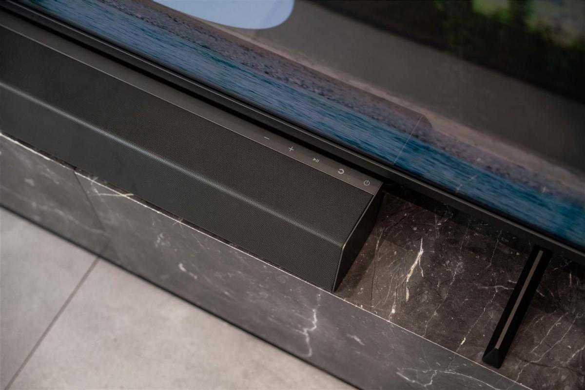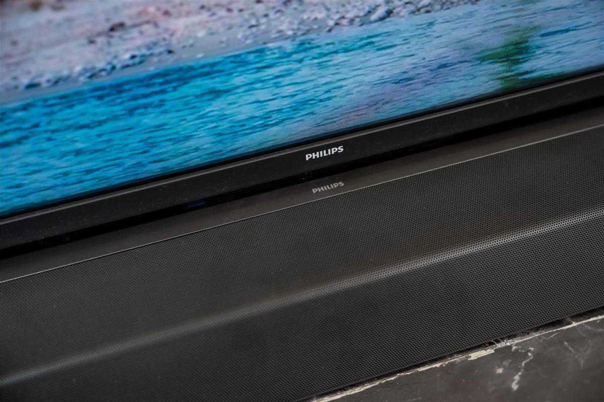 飞利浦B8967的外观采用了简约风格设计,同时“枪灰”的机身颜色可以很好的融入各种装修中,简单点来说就是放在家中不会显得单调,格格不入,本体长112cm*高度6.4cm深度11.3cm,可以协调的放在电视机下面。