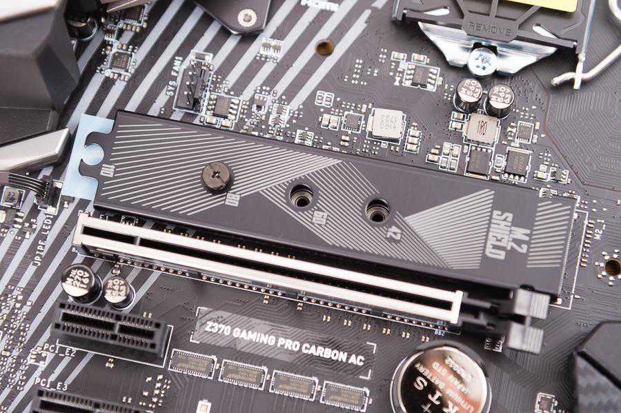 没有花俏的PLX,本应该是第一条PCIe槽的位置设计成了带着SSD散热片。支持IntelOptane内存。这些插槽可以容纳各种固态盘,其中最长的符合22110标准。这两条插槽采用PCIex4通道连接,可提供高达32Gbps的带宽,但是共享PCH的带宽,实际上同时装2条也就是扩展存储容量,并不能加速。