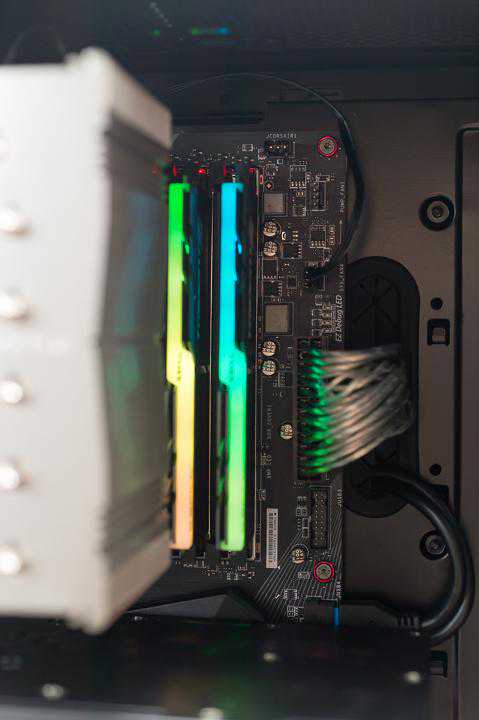 该板已配备了四个DIMM内存插槽。正式支持最高频率是DDR44000(OC),不过装机中测试主板内建MemoryTryIt!自动超频依赖于CPUIMC内存控制器的体制,一颗打酱油的i3-8100顺利点亮4000C18,但是正主儿i5-8600K只能自动超内存功能稳定3866C18。内存插槽和CPU插槽之间预留有足够的空间,这意味着即使选择使用大型双塔散热器,也不会遇到内存和风冷的打架的问题,当然内存不能使用高马甲。(后面装机过程中可以看到对比图片)事实证明即便是预留了空间,芝奇幻光戟内存马甲也影响安装猫头鹰D15S的第二个A15散热风扇,只能装12cm直径的风扇。