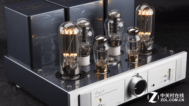 [中关村在线音频频道原创]本月5日,Cayin音响推出了新品胆机组合A-845(胆机+胆管),售价为18800元,这对于HIFI发烧友来说无疑是一个重量级的消息。影响胆机声音的最主要因素就是胆管,A-845所采用的是曙光陶瓷金脚300B真空管负责处理前级音质;搭配曙光845真空管做单管单端甲类放大,为前级提供大功率输出支持。