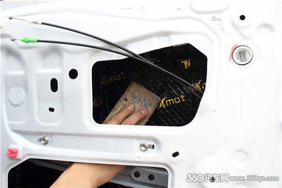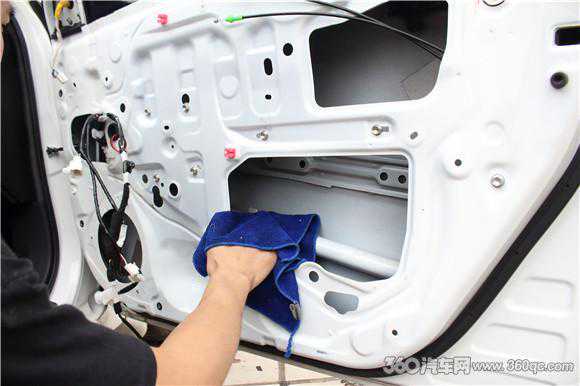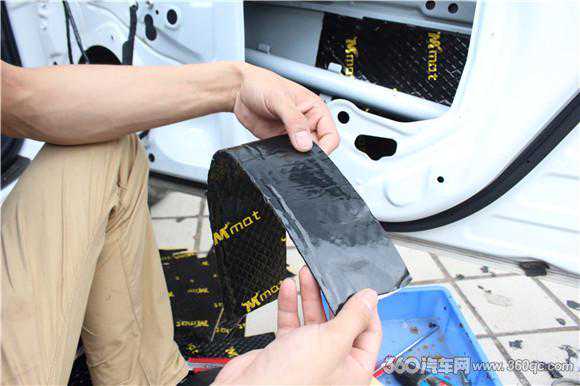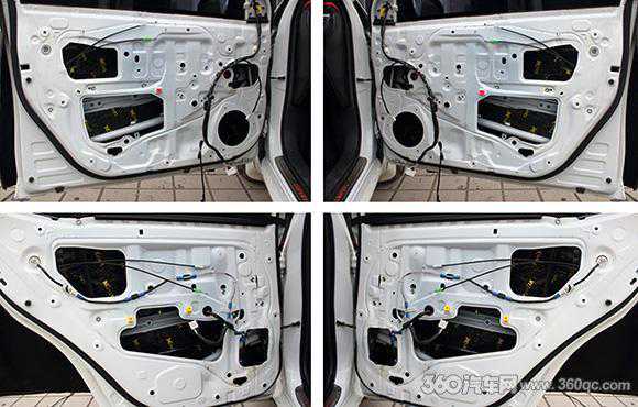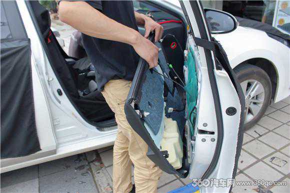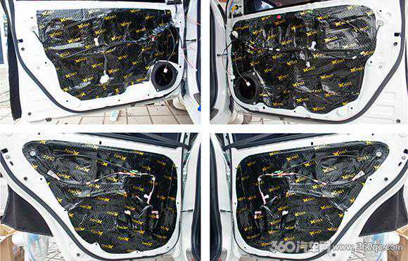接下来就是做隔音部分了,首先是四门隔音:四门隔音是汽车隔音的基础工程,对于这几个部位的有效减震升级,能够增强钣金的强度,降低共振噪音,而且能够提升车门整体的厚重感,使音响系统发挥更具出色的表现。