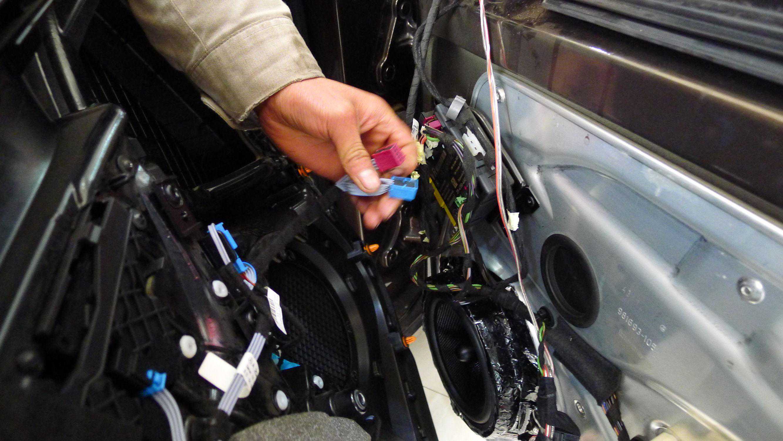为什么是待定呢?因为车主在试音室里听了半个小时之后,觉得这两套喇叭都非常适合自己,实在是纠结,不知道到底选哪套好。又给我们提出了一个小要求,将两个品牌的喇叭分别取一支装在左前门和右前门,再在车上对比一下效果。