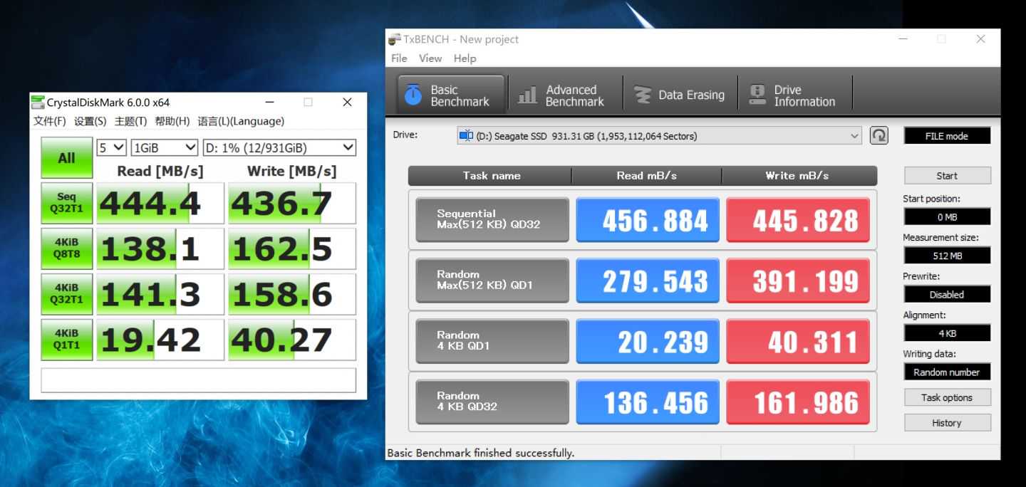 然后买了希捷的颜系列黑钻版,这个定位算是性价比型号,实物确实非常小,尺寸跟名片差不多,然后我买的是1T版本,测试速度也达到了的接口上限了。