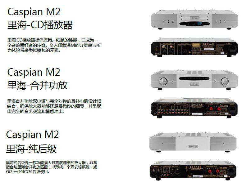 这三台都属于里海M2系列,而从上至下是CD播放机、合并式功放、两声道后级功放。