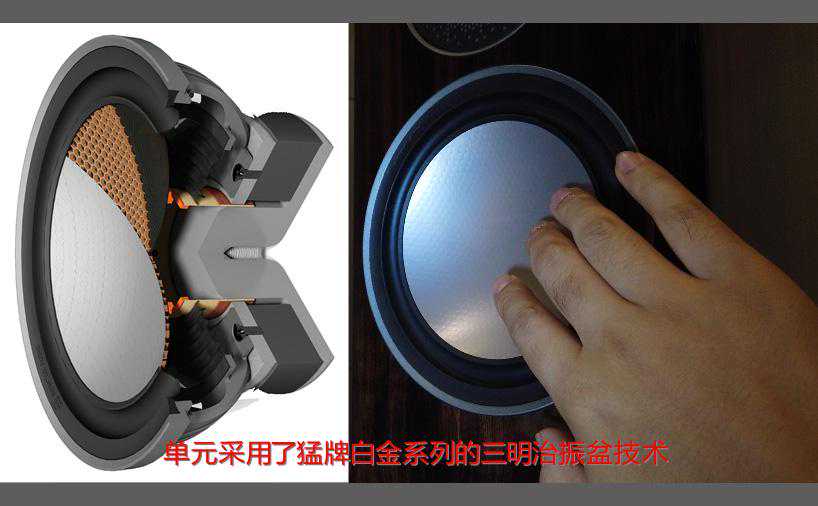 中低音单元的尺寸,并没有变化,依然是6.5寸。但结构采用了猛牌白金系列的三明治振盆技术。