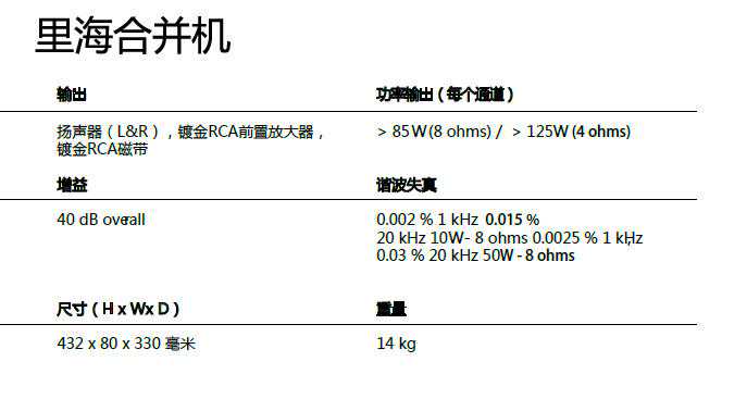 听了总代老板的一通说明之后,我明白了——里海的后级,并不是单纯前上推一对箱子用。这台后级,实际上就是里海的合并机拿掉了前级放大部分,而这台后级的作用,主要是配合前级玩双线分音用。