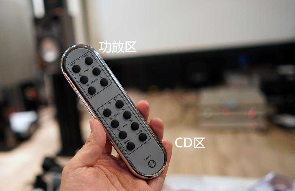 同时,里海CD机和合并机使用的是同一款遥控器。这个遥控器上半部分是功放区,下半部分是CD区,简单易用。