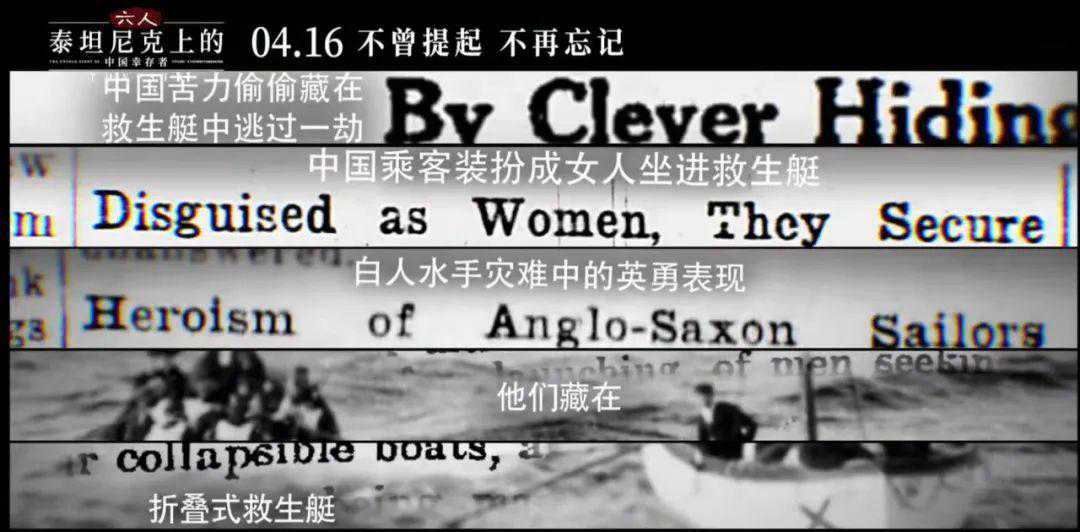 4月23日,《纽约论坛报》上发表了一篇名为《生还的中国人搭船离开》的文章,上面这样写道:“他们(中国人)对自己离开那艘下沉的船时、船上还有妇孺一事反应冷漠”,“当他们乘卡帕西亚号抵达纽约后,人们发现他们居然毫发未伤。就生还比例而言,中国人的生还比例是泰坦尼克号上各民族之冠”。