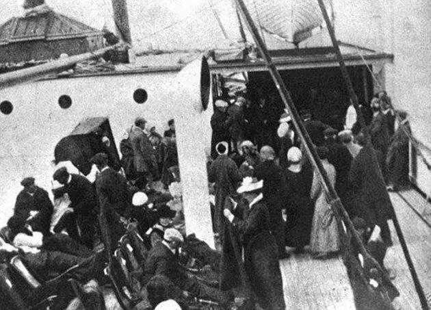 卡柏菲亚号甲板上的泰坦尼克号生还者。/维基百科