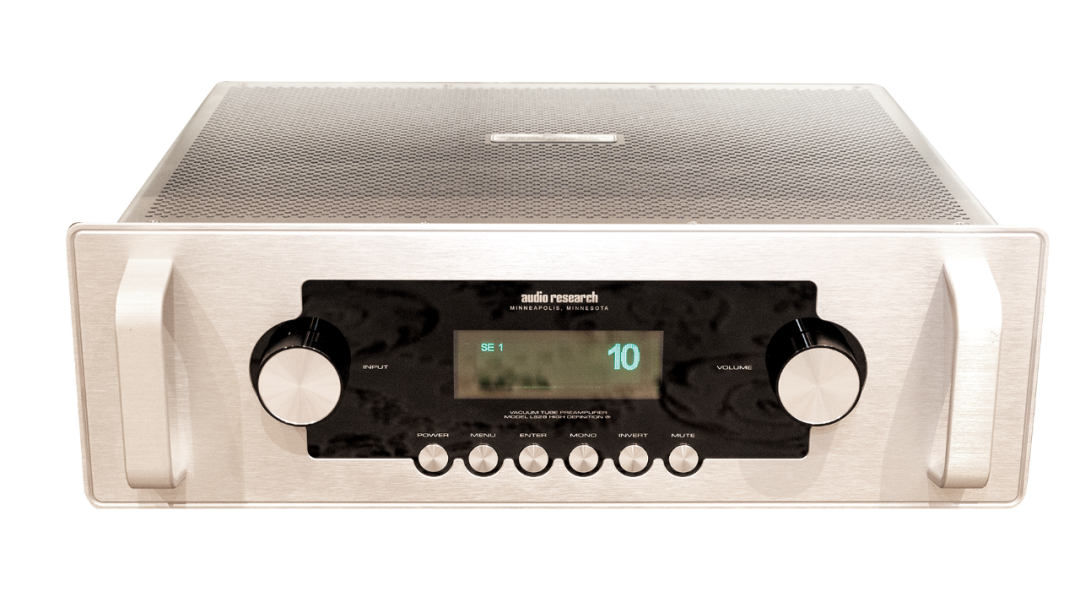 推动德国AVANTGARDE喇叭花UNOSD的中、高音号角的AudioResearch电子管功放有不俗的研发实力,推陈出新的速度很快。AudioResearchLS28SE电子管前级使用复古绿色LED显示屏,用户可通过它看到入选择、音量指示,LS28SE甚至还提供了很多电子管机所不具备的相位反转功能和单声道功能,还包括一个家庭影院直通,胆管寿命和输入命名功能。LS28SE前级带四个平衡和四个单端输入,两组单端和平衡输出,以及一个平衡和单端输出。