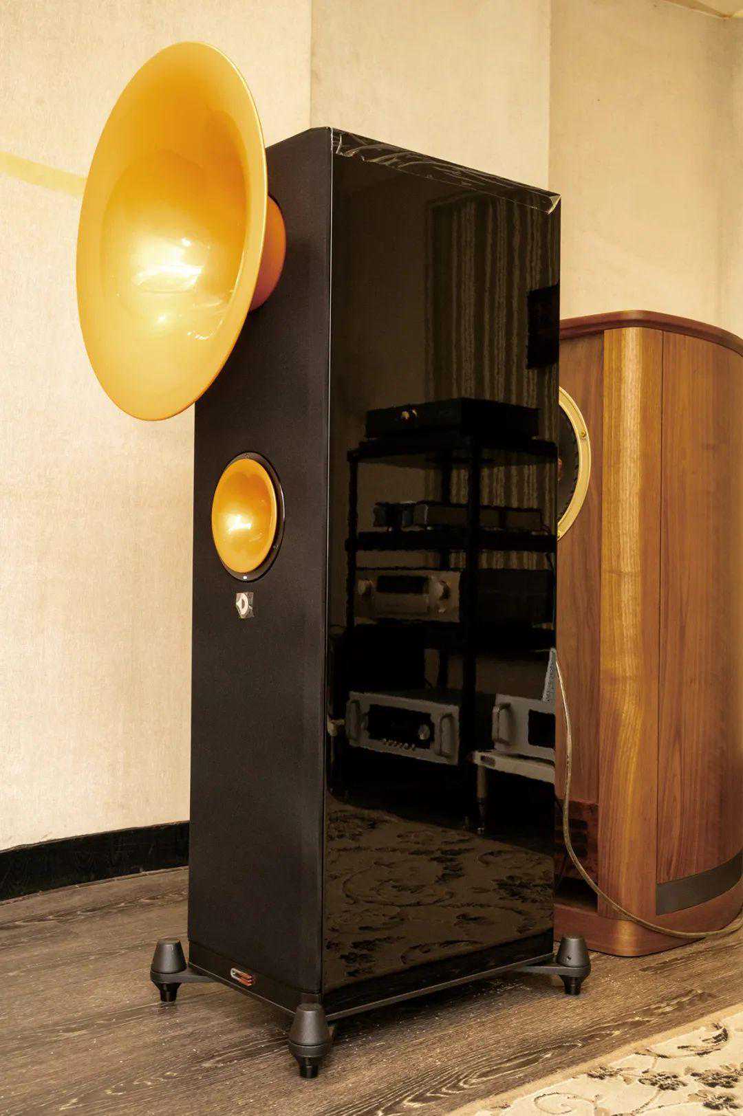 号角是最传统的喇叭,至今仍被认为是声音重播的最好方式之一,有高灵敏度、速度快、失真低、细节多、声音宽松等优点,然而,因为物理体积限制,对于低频段的还原一直并非号角所擅长。我们所接触过的一些传统老号角音箱,都面临低音推不动或者控制不了的问题,并且年代久远或者当年的技术造成老号角的失真大,要复杂的分音器构成陷波来拉直频率响应因此低音也比较难推,再者,当年的技术条件下高频延伸不够,音色比较直接和干硬,指向性过高造成轴响应不佳等问题,正因为老号角音箱存在一些设计上缺陷,所以喜欢号角音箱的德国人进行了很多改良,比如上世纪八十年代之后出现的圆号角,既美观又富科技感。