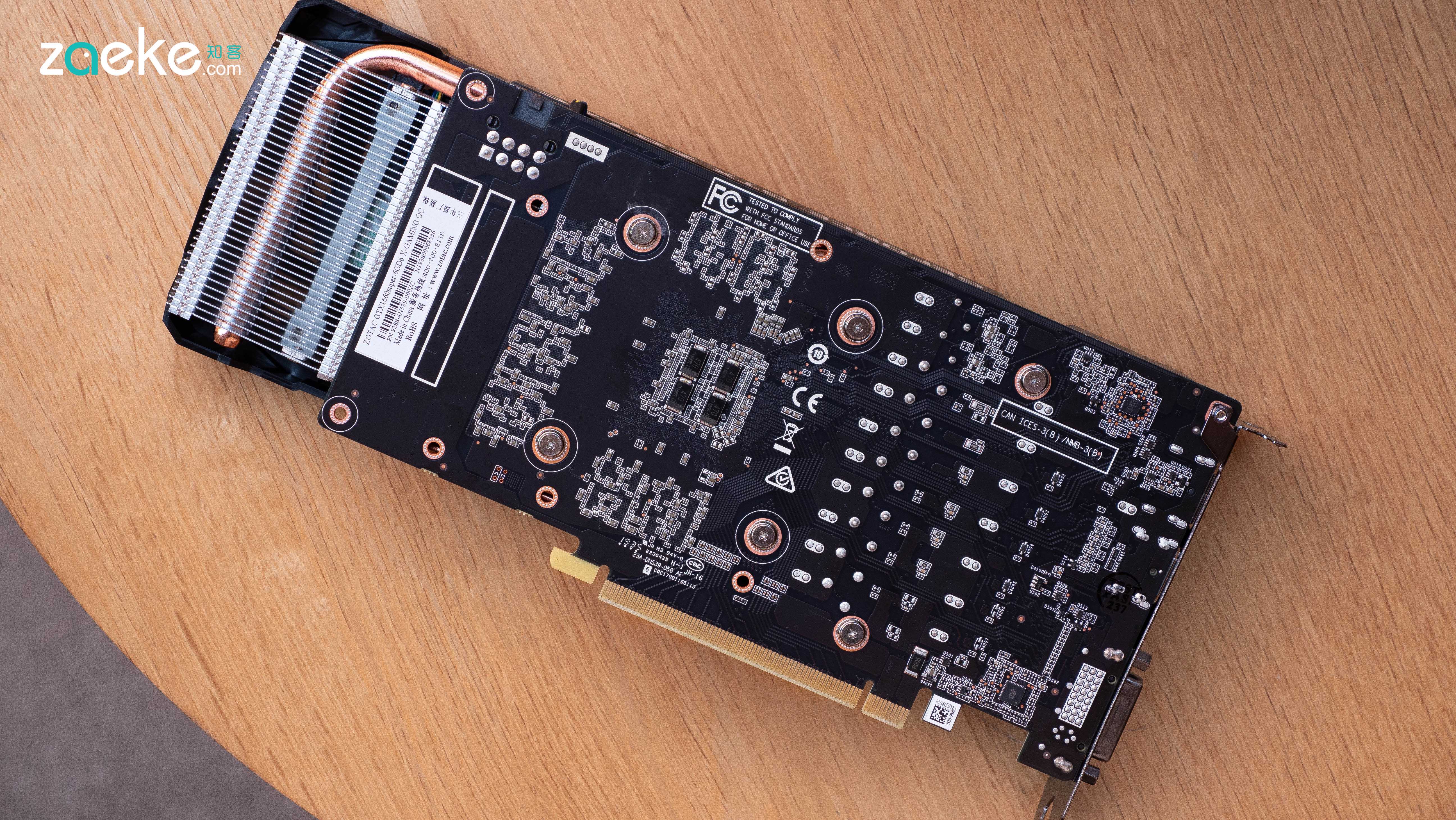 这次知客拿到的测试卡是索泰的GTX1660SuperX-GAMING,这张卡在索泰目前推出1660Super显卡里是定位较高的产品,采用3风扇2热管设计。同品牌同芯片还有个叫做“毁灭者”的版本,使用的是2风扇2热管散热。在目前市面上发售的1660Super显卡中,索泰的这张X-GAMING也比较高阶。