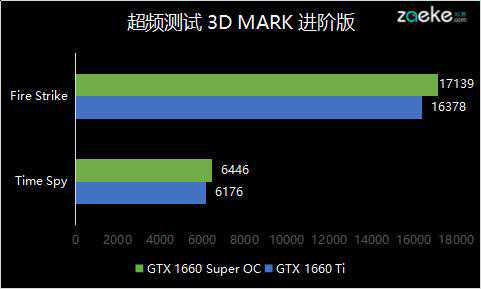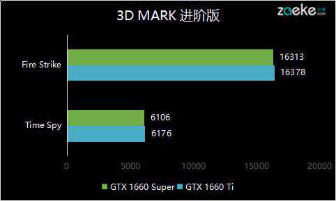 在这世界上最好玩的游戏3DMark里面,索泰GTX1660SuperX-GAMING的FireStrike与TimeSpy显卡得分分别为16313和6106。与用于对比的1660Ti之间差距只有1%不到,可以认为在索泰额外提升GPU工作频率之后,GTX1660SuperX-GAMING的理论性能已经几乎与工作于默认频率下的1660Ti相当。