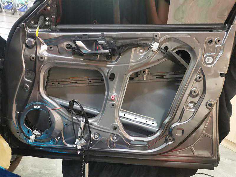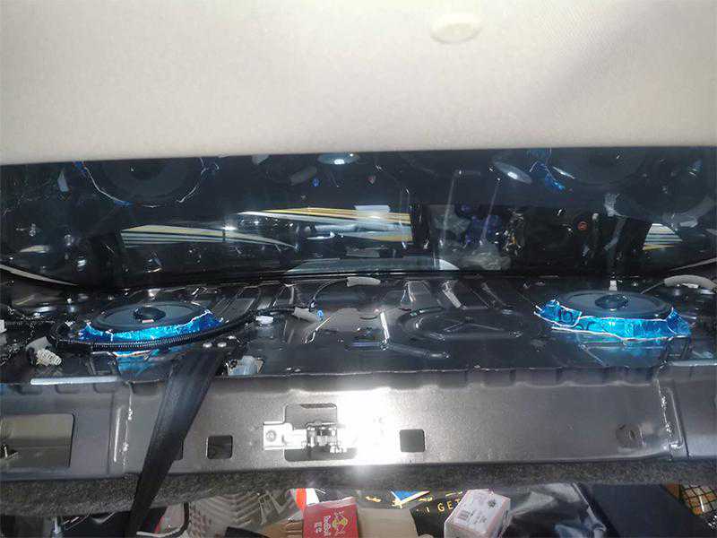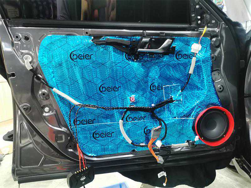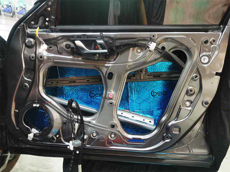 进行第一层钣金加强隔音,使用贝尔蓝膜隔音,减少原车共振。减低风噪异响