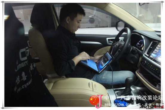 最后由我们芬朗电子车元素小班教学的主要讲师王大师来进行声场的定位与声音的调试使整套音响系统达到最好的声音效果。