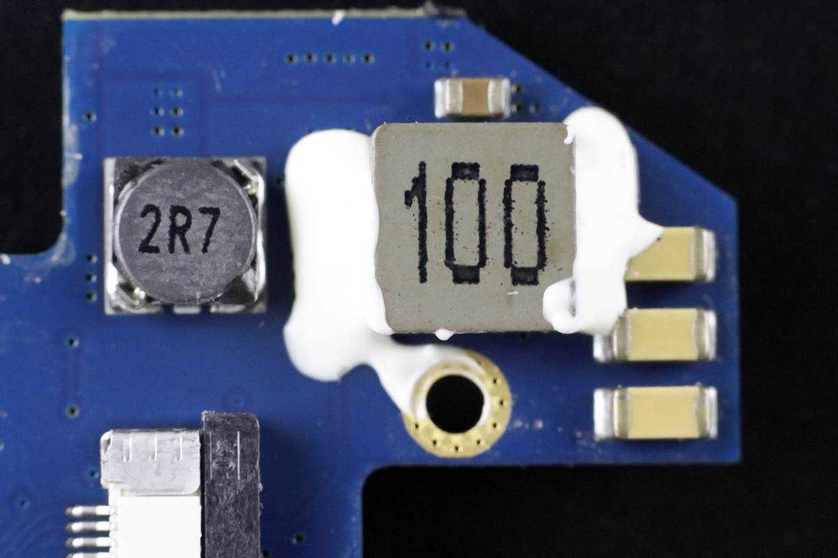 降压电感打胶固定,小的电感为显示电路降压。