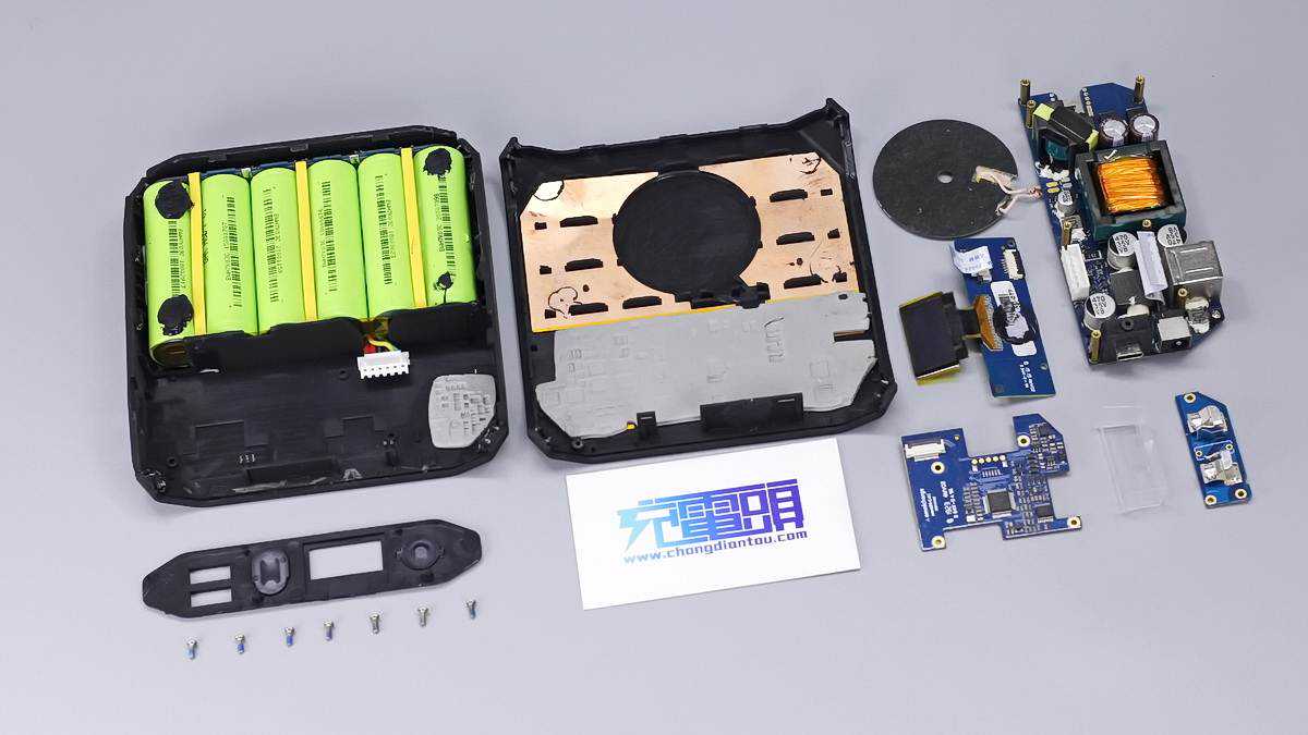 Omni20+充电宝拥有DC、USB-A/C接口以及AC输出插口。其中DC、USB-C口均支持双向快充,最大功率可达100W。AC插口支持100W交流输出,再一对比此前拆解的储能电源的逆变器模块,虽然功率比不上,但能在如此小的多合一充电宝里塞入逆变输出电路,着实让人觉得不可思议。那下面就来看看这款产品的内部是如何设计的。