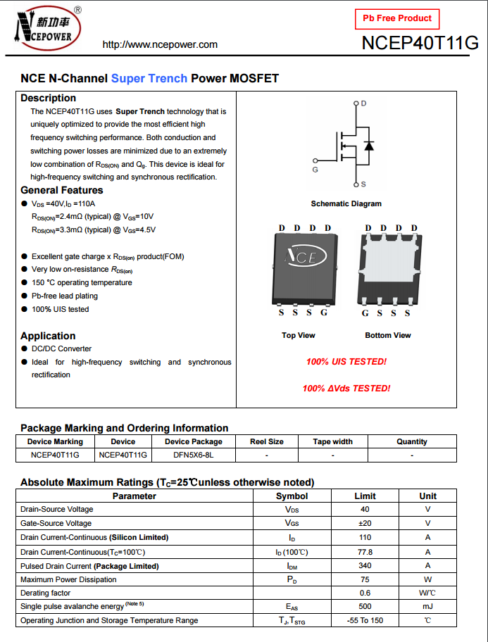 新功率NCEP40T11G资料信息。