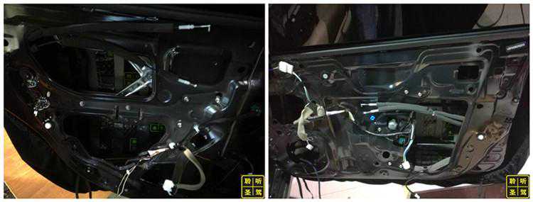 拆开车门护板之后发现原车门里边并没有隔音设施,车门铁板直接暴露在我们视野之中,偌大的车门空腔为噪音提供良好的发挥场所!(原车门基本没有隔音措施)