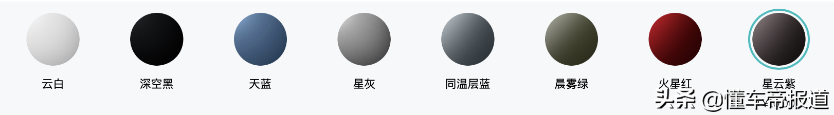 同时ES6外观提供包括深夜黑、云白、天蓝、星灰、晨雾绿、同温层蓝、火星红以及星云紫,值得注意的是,星云紫需要加10000元。