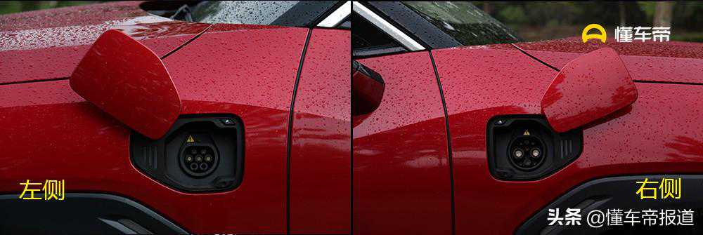 在新车翼子板两侧均配备有充电接口,其中左侧为慢充接口,右侧为快充接口,同时还新增加了电动开关装置,科技感更强。