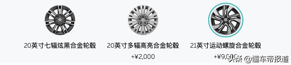 试驾车为首发纪念版车型,标配有20英寸双七辐炫黑轮辋,如果想视觉效果更好,还可选装和ES8相似的21英寸运动螺旋轮辋,价格为9000元。而基准版和性能版标配有19英寸双五辐酷银轮辋。当然,刹车系统还采用了来自Brembo的前四活塞卡钳。