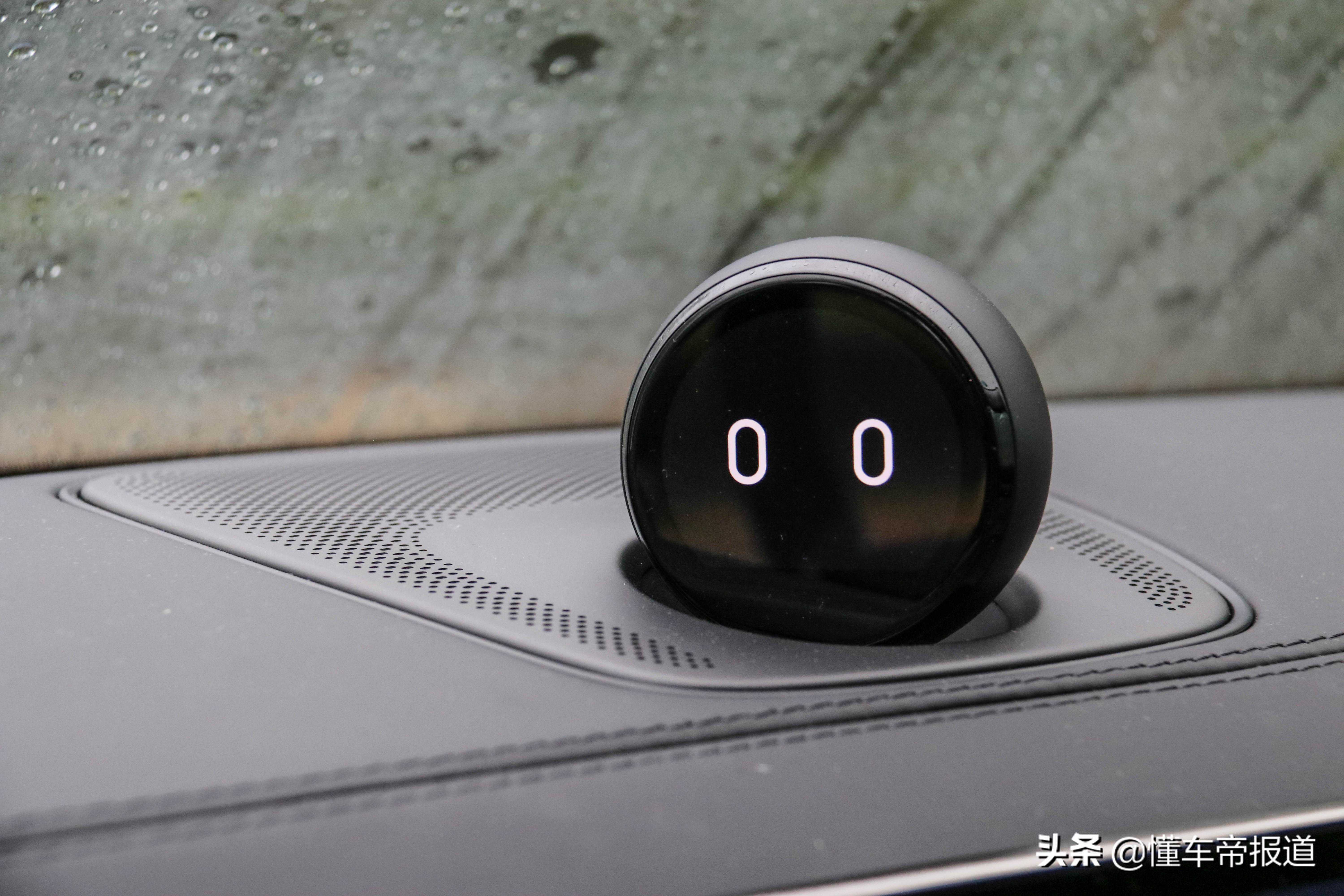 而中控台中间位置上方为NOMI车载人工智能伙伴,小圆球造型非常可爱,而这也是首发纪念版车型的标配。平时有问题可以直接和它进行语音互动,而且在显示屏上还能用表情来回复你。不过,别看它小巧,但在基准版还有性能版是需要选装的,而且价格为4800元。