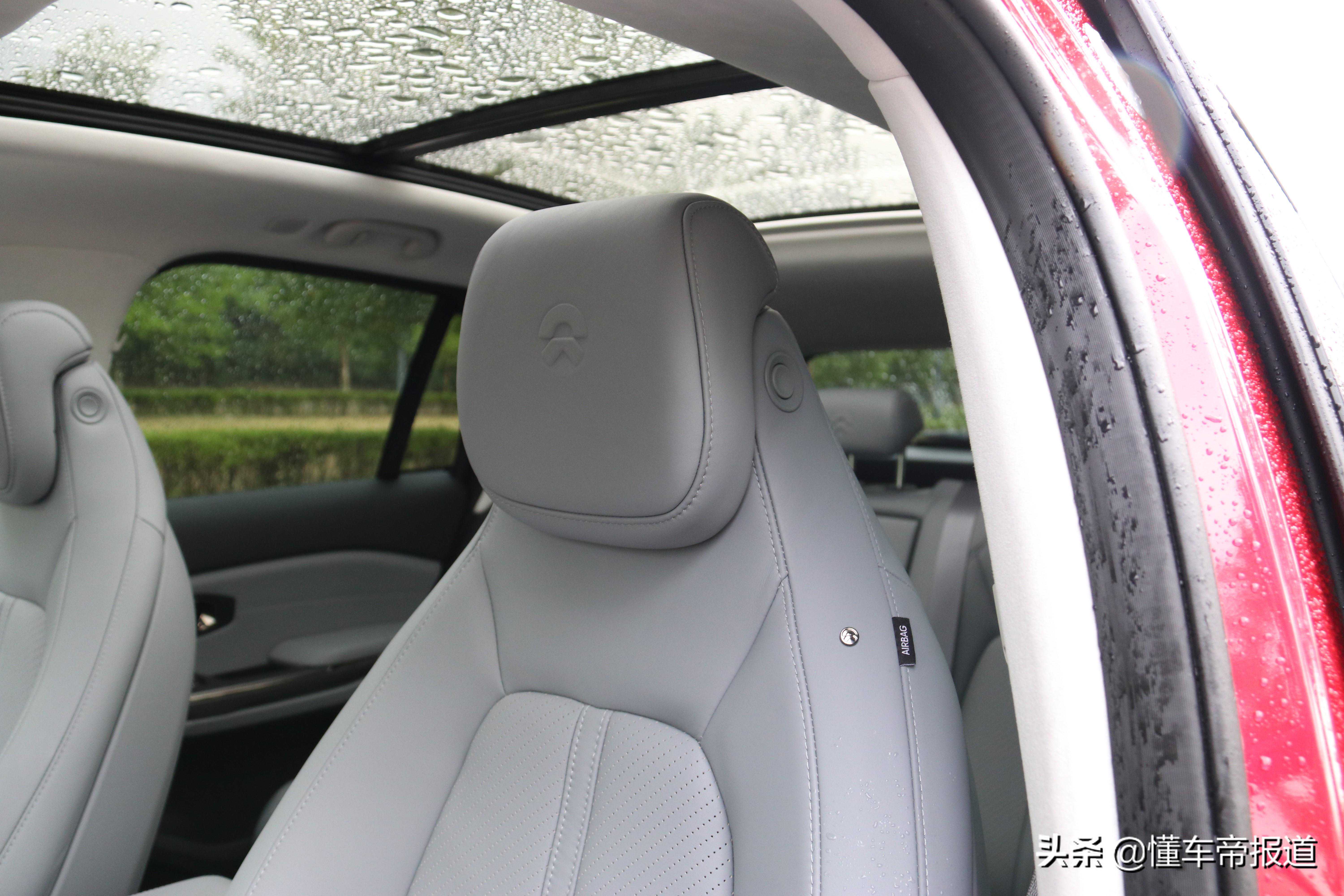 而由于ES6纯电动车的特性,所以相比普通燃油车在振动及噪音上也有一定的优势,日常驾驶中基本感受不到明显的风噪和胎噪,坐在车内整体还是一个比较安静的环境,相信这也和ES6的很多细节设计分不开,其中就包括双层玻璃。