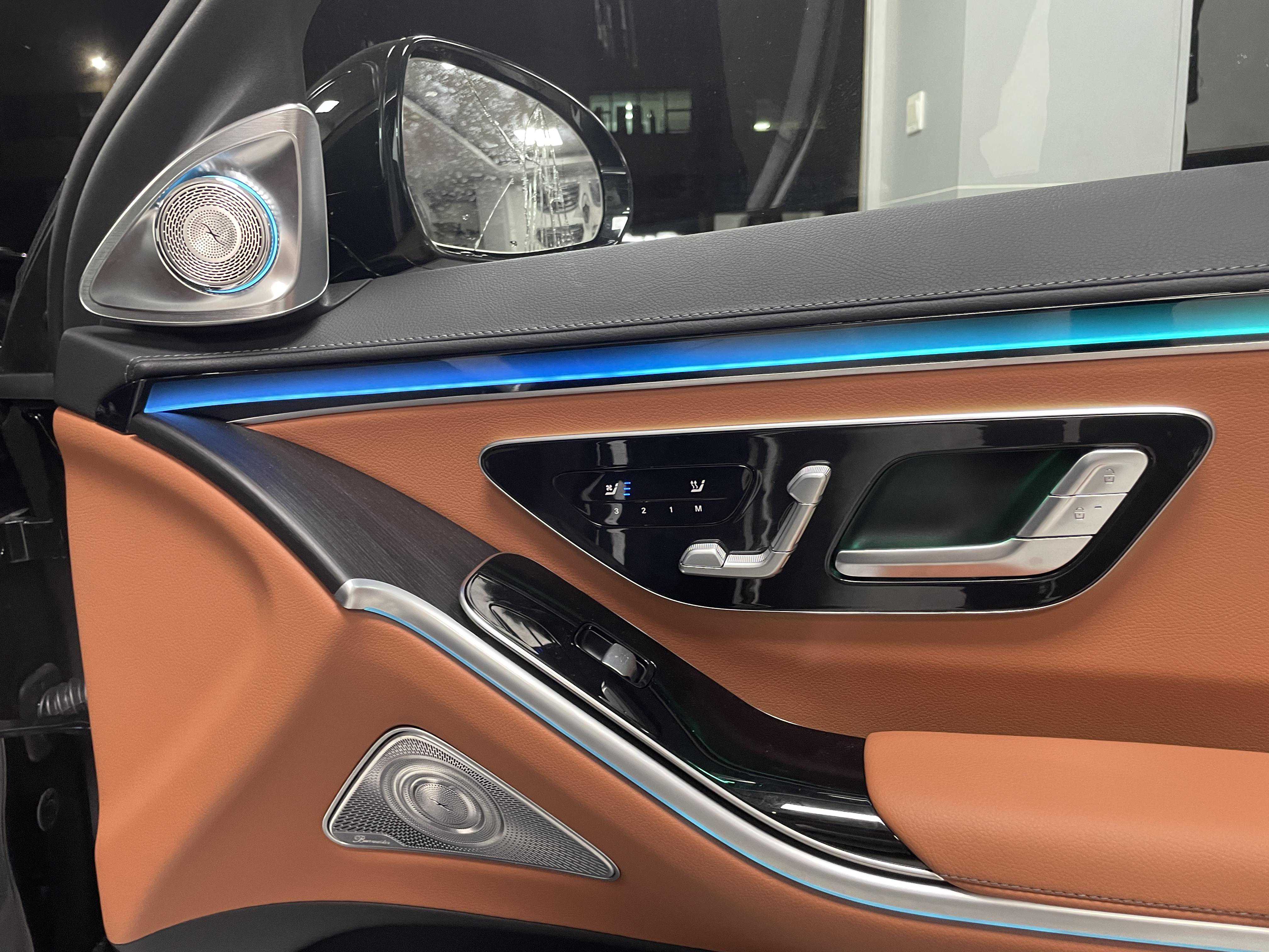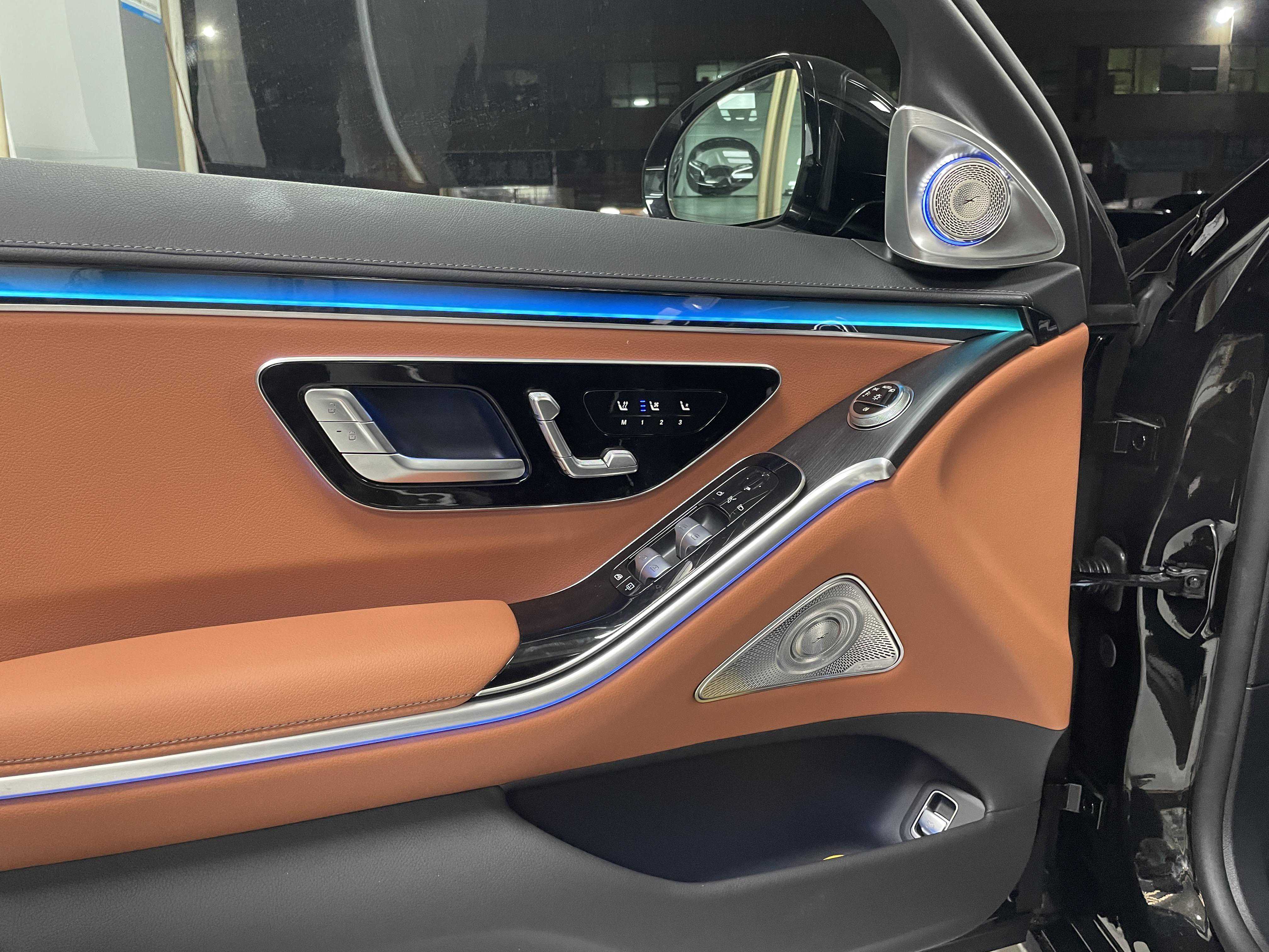 2023款奔驰S400L商务型提升柏林之声音响,还原豪华奔驰车的天籁之音,升级柏林之声音响是15个扬声器,一个功放,590瓦功率。