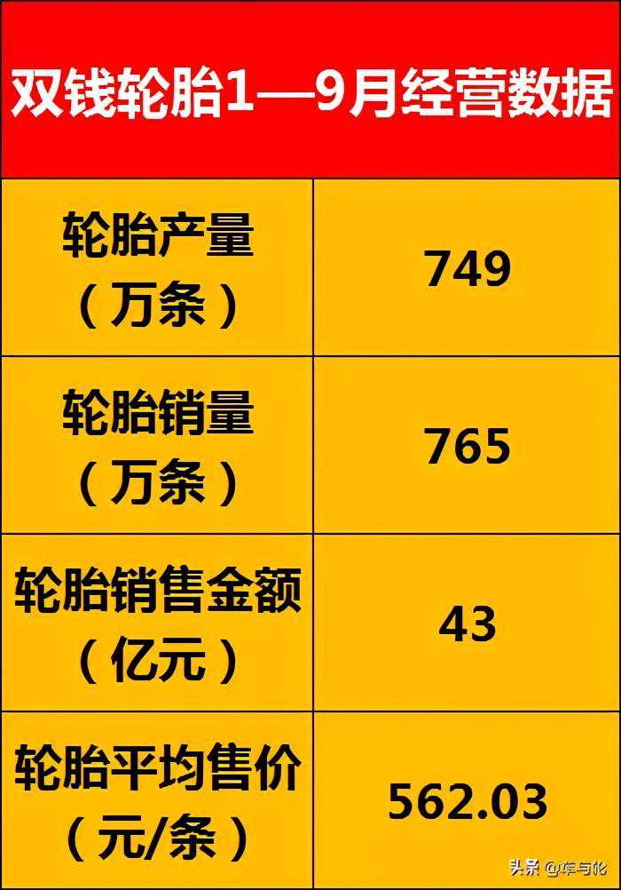 在轮胎部分,双钱前三季度生产轮胎约749万条,销售轮胎765万条,轮胎销售额43亿元,平均售价562.03元/条。
