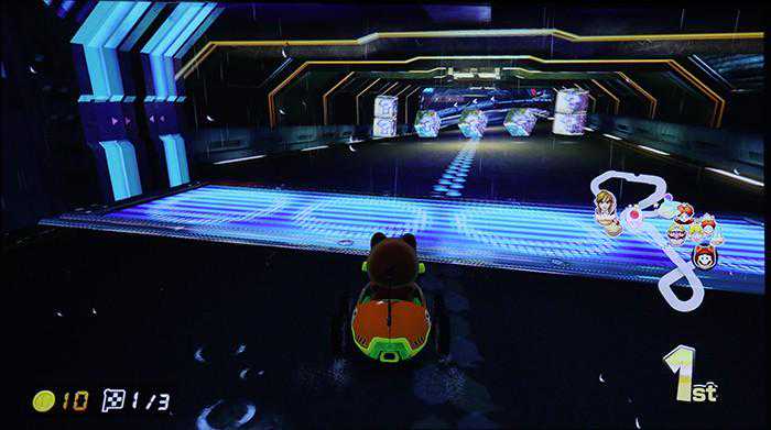 就算非3A游戏,在A1H下也能获得不错的音画体验,像《马里奥赛车8豪华版》中一些细节展现得更加清晰,比如第一名选手最怕的“蓝龟壳”,当其他玩家发射出来后,声音由远到近的变化在音箱展现得非常明显。